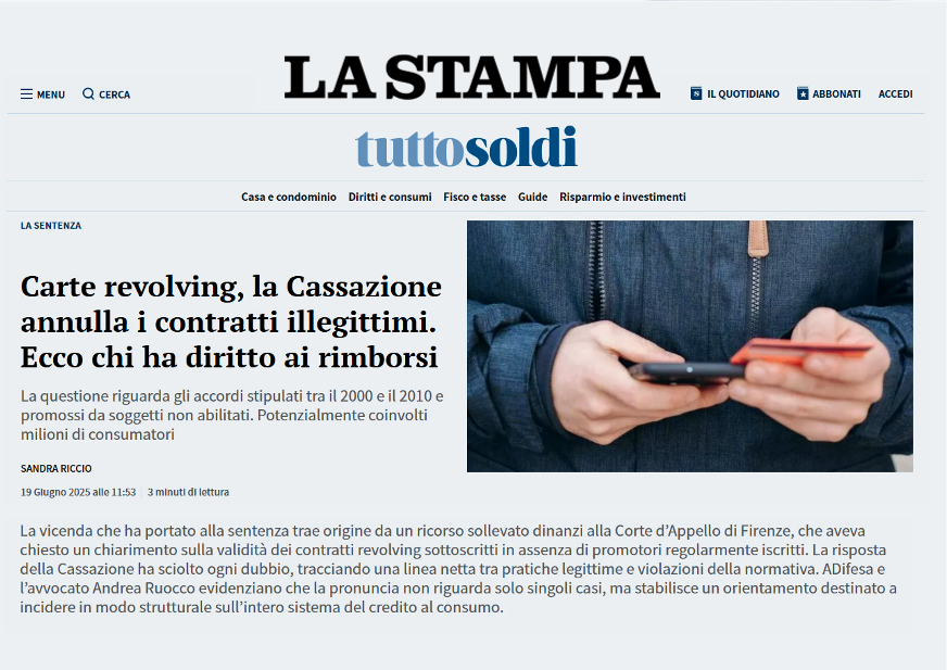 Una sentenza attesa, che potrebbe significare per milioni di utenti un rimborso degli interessi pagati. E’ quella pronunciata nei giorni scorsi dalla Corte di Cassazione, a sezioni unite, in merito ai contratti di carte revolving promossi da soggetti non abilitati.